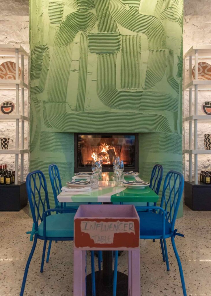 Then came Miami – a 1950s carpentry workshop turned brasserie, artist’s studio, and showroom. It’s a hybrid space where flavors, colors, and personal stories converge. “I wanted people to feel as if they were walking into my living room,” Alexandra says. The menu features recipes layered with memories: from the comforting dish her best friend’s mother still cooks for her to the pizza dough she spent two years perfecting. “Miami is food that embraces you,” she says with a smile. “It’s simple, soulful, and personal.”