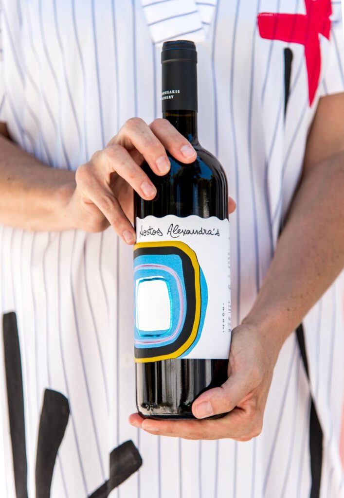 At the winery, Alexandra created her own artistic world. The spaces are filled with painted barrels, ceramics, and colors that carry her personal touch, transforming the winery into a living canvas. One of her most recognizable works is the vibrant label of the Pink rosé wine, while those dining at Salis in Chania’s old harbor can admire the mural she created there – a seamless blend of art, wine, and gastronomy woven into a single, distinctive narrative.