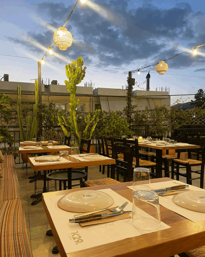 The idea is simple but revolutionary: diners choose their cut of meat directly from a display of premium selections, many of them sourced from the owners’ family farm at the base of Mount Taygetos. Grass-fed Greek beef is the star, but K29 also works with small-scale producers across the country to ensure variety and quality. Once the choice is made, the cut is prepared with precision right before your eyes and then cooked exactly as you wish.