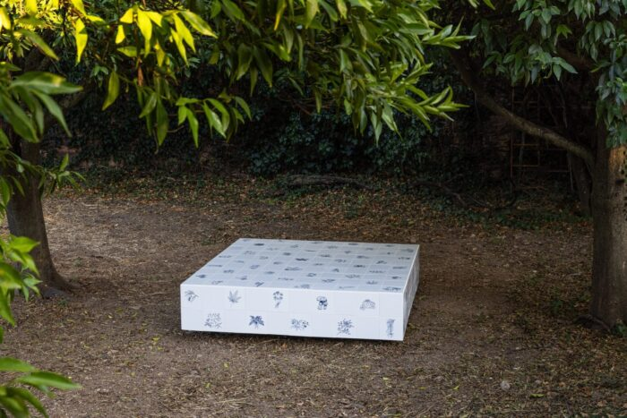 DEO projects on the exhibition: “Original works created especially for DEO, alongside existing pieces, form a polyphony of media -sculptures, ceramics, installations, and a unique garden recreation – presented in a 30-acre outdoor space, a typical orchard in the Kampos of Chios, opening to the public for the first time this summer. Marking its fifth anniversary, DEO presents Once We Were Gardens at the historic Karavas Estate (Karaviko) in the Kampos of Chios. The exhibition reflects on the inevitable cycles of growth and decay, exploring the deterioration of bodies, ideas, spaces, and relationships through the symbolism of the garden.