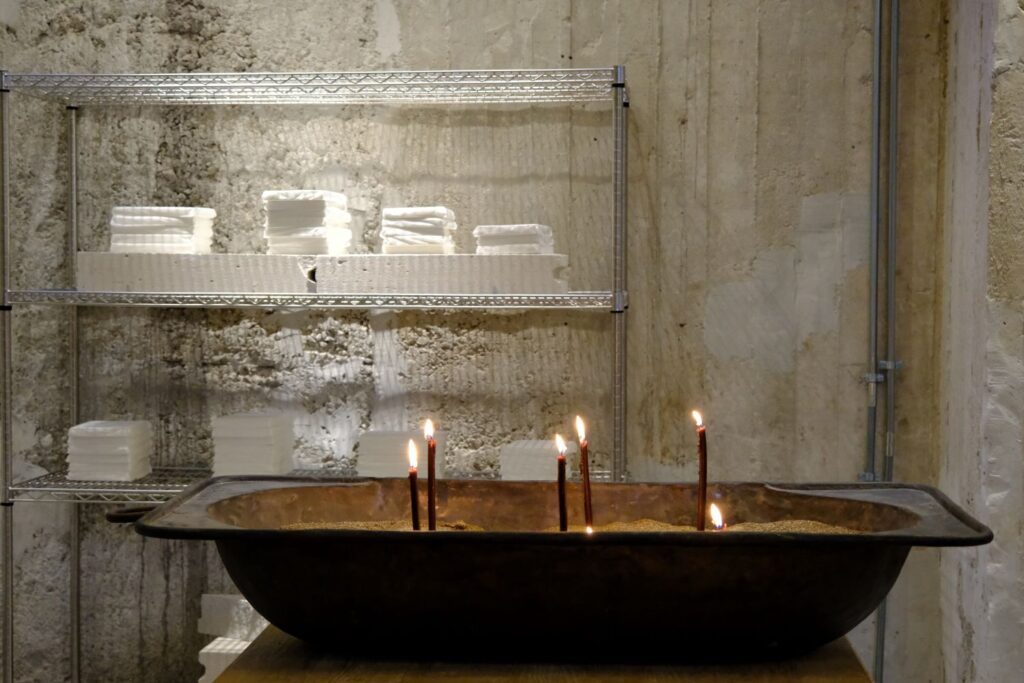 The Apotheke’s incense contains no added scents. It is handmade by monks from Mount Athos, stripped of the heavy aroma of church ritual. It is a gesture of connection, not worship.