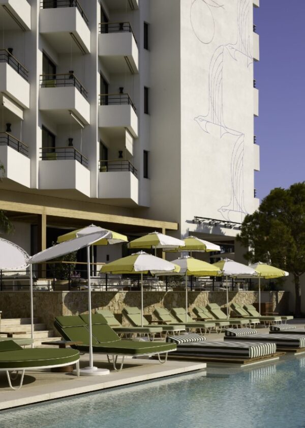 Next to Sebastian and the lobby, the heart of the Ace Hotel in Glyfada beats in the Swim Club. In a few weeks it will be a unique setting, especially on sunny days. The Swim Club welcomes everyone, friends of the neighbourhood and non-resident guests. A rooftop pool restaurant – the hotel’s latest culinary highlight – is expected to open in spring 2025.