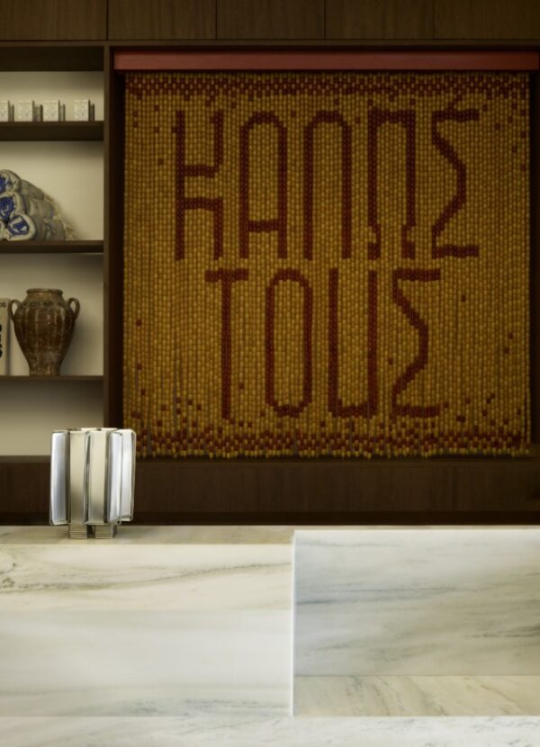 The soft bathrobe on the wall will become one of your favourites, as will the blankets, all designed by Salma Barakat. You’ll want to get your hands on them, and you can, along with many other wonderful products from Greek brands in the lobby shop, including traditional local herbs and spices from Daphnis & Chloe, jewellery from Vasiliki, clothing from METHEN and beach towels from the Alekos Fasianos Museum. The entire collection is another indication of the art and design that the space represents.