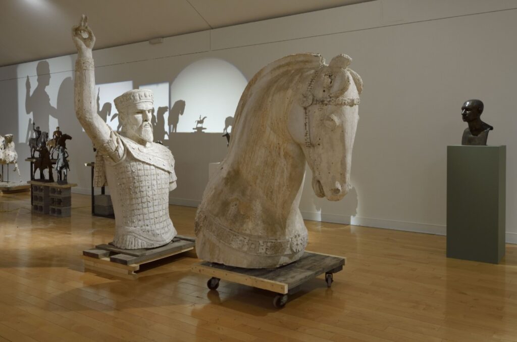 Before I begin my tour of the exhibition, I am impressed by the video prepared by Thodoris Bargiotas’ students. Through their images, I follow the transport of the equestrian statue of Alexander the Great to its next stop: the atrium of the Benaki Museum, where it will be displayed as part of the exhibition. A journey to heaven and back to earth – and then back to heaven again, as if it were carrying the eternal passage between myth and reality.