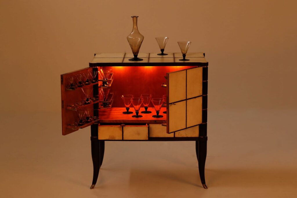 Drawing inspiration from the sophistication of 1930’s Parisian interiors and spanning the transformative decades of the 1940s to the 1960s, this curated collection highlights a golden era in design with intricate marquetry, exotic woods, sculpted structures and sumptuous upholstery.