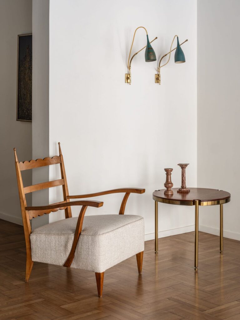 The installation features a selection of important furniture, lighting fixtures and decorative objects from visionary designers such as Tomaso Buzzi, Angelo Lelii, Osvaldo Borsani, Hans Bergstrom and Poul Kjaerholm as part of timeless masterpieces that continue to inspire and captivate audiences.