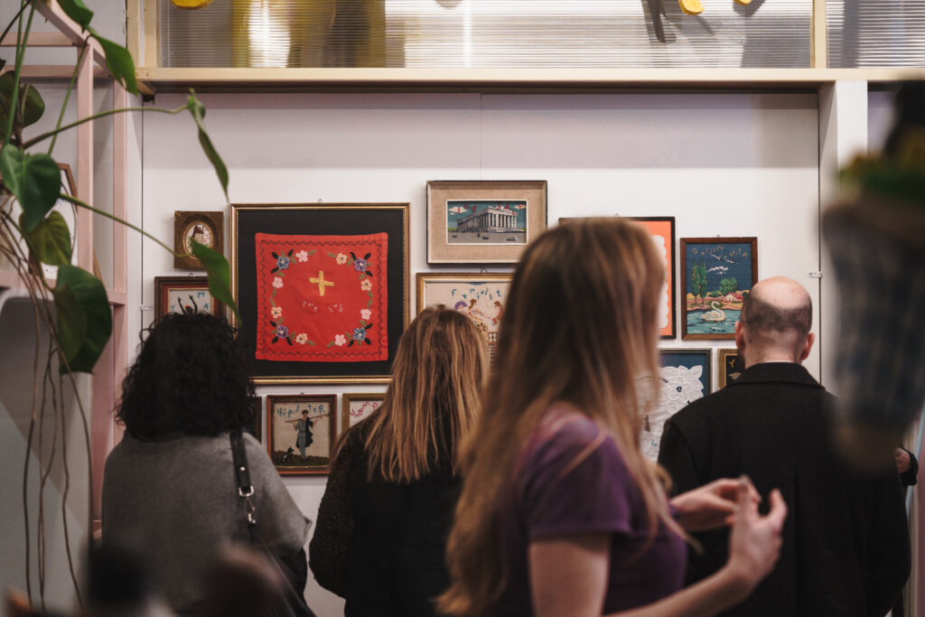 There is a place in Kypseli called KICK, at 26 Sporades. It was there that I noticed an exhibition with a poster embroidered with the Parthenon and a SALE. It was called ELLADA 2.0 and I immediately thought that the creator must have a sense of humour. Seeing the exhibition, I felt a sense of familiarity, a little lounge upstairs with elements of the urban homes of our childhood. The little cheddars are teased with patterns sewn onto them. The porcelain plates looked as if someone had taken a crayon and written their motto. As if I had been transported to my aunt’s house, where we had to be careful, and I had taken markers in my hands and filled the place with drawings. Who is HIN, who has taken me on this journey through time, in broad daylight, in a crowded café?