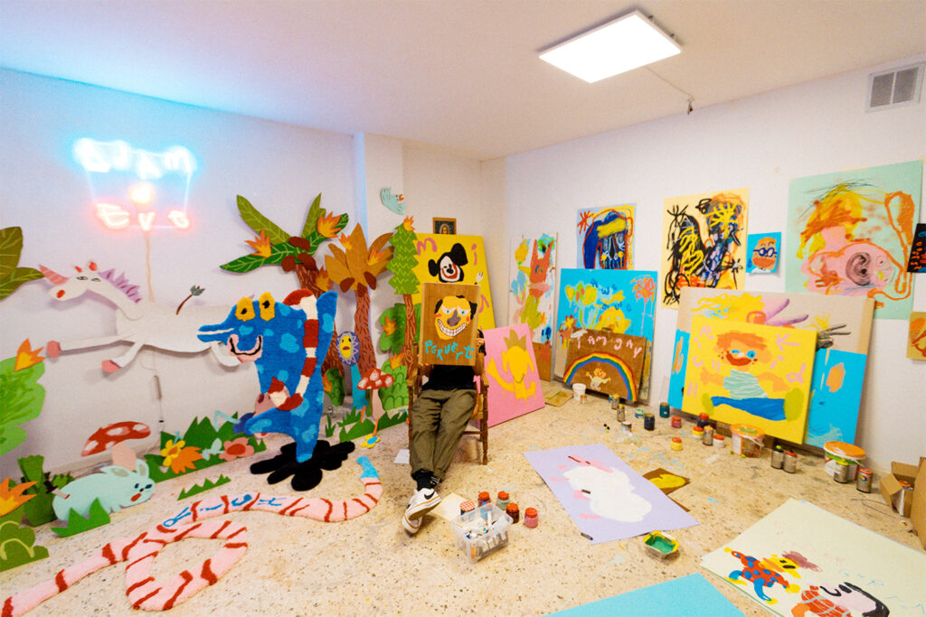 My father takes credit for that. I started studying maths and economics after my football career ended and my dad said: “Why are you studying maths? You suck at it. Why don’t you do something you’re good at?” Which is quite rare for an Asian father. But what do I know? I don’t know how to do anything. I only know how to do sports. Until something happened. We used to borrow books at school because books were very expensive at boarding school in England. Each book had its own number, so we paid a deposit and when we returned it, we got our money back. So I had a big book on economics. It cost about 60 euros, which was a lot of money in those days. But I lost it because I’m useless at keeping things. I had no money and I thought I would steal my classmate’s book by changing the number. Mine was 26, his was 6 and I put a 2 in front. I stole it, changed the number and gave it back to my teacher. My teacher threw it back and said, “It’s not your book. I said to her, “What do you mean, it’s 26! It’s mine. And she says, “You never listen to me. You always draw on every page of your book. I’ve seen your drawings. I like your drawings, but this is not your book. And then I thought, God, my parents are going to kill me. But then I thought, OK, that’s probably the other thing I could do, that I could do something with art. So I got into graphic design. And I slowly realised that it sucks. It’s not art for me, so I slowly moved on to illustration, to painting.