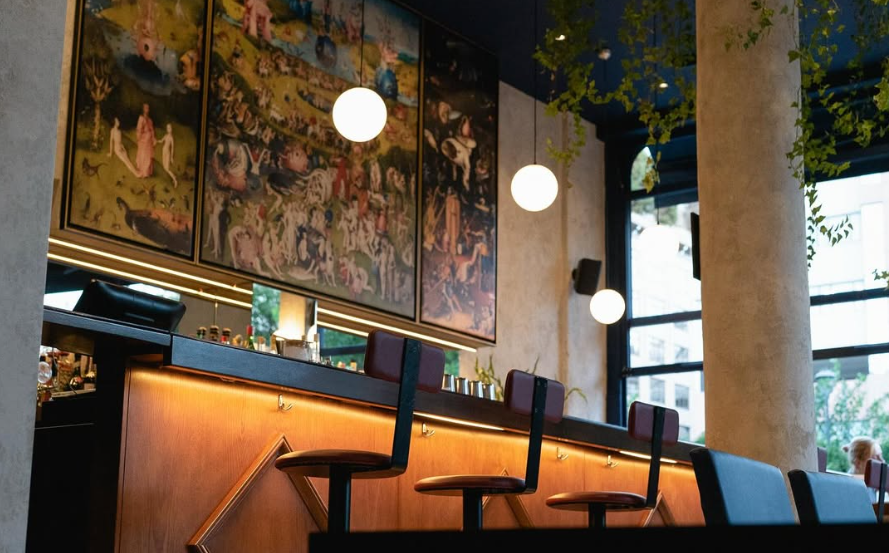 A few steps from the old Hilton, Quinn’s is a great example of what happens when a seasoned bartender finally builds a space that is entirely his own. Ilias Marinakis, known for shaping some of the city’s most respected bars, has created his own, one that showcases his personality and his years of expertise. The name comes from his favorite pub in Camden and his father’s nickname. Inside, sturdy wooden furniture sets the tone, while a striking triptych of Hieronymus Bosch’s Garden of Earthly Delights, his artwork of choice, draws the eye and sparks conversation.