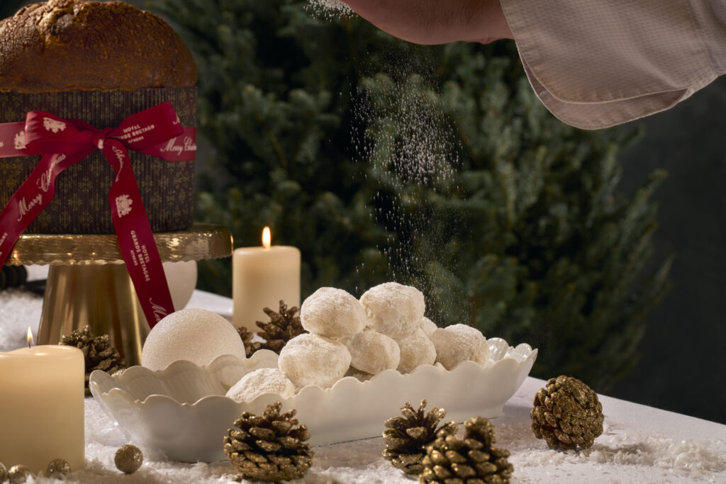 Original gift compositions in festive boxes, along with the most delightful Christmas sweets, await you at GB Corner. Spectacular Yule logs in chocolate, Mont Blanc and Saint Honoré flavors, as well as exquisite chocolate sculptures crafted by the hotel’s pastry team, promise a journey of indulgence. Be sure to try the Christmas Cake with orange glaze, citrus notes and aromatic spices.