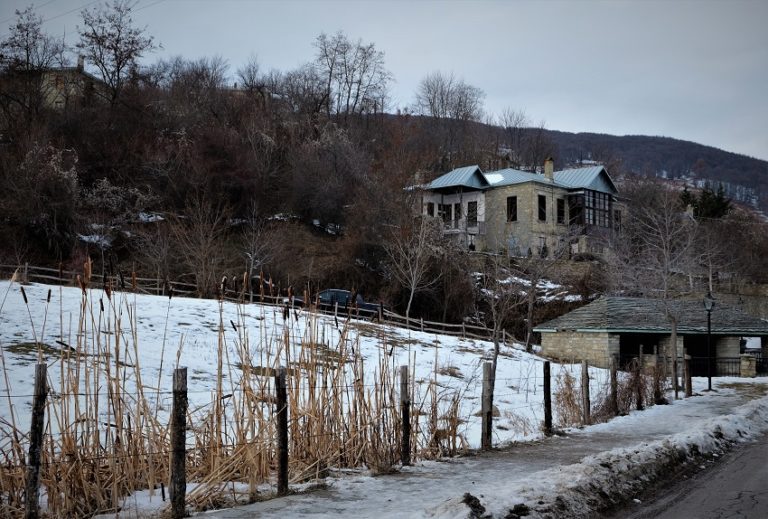 We walked along the central cobbled street to the main square, enjoying the first snow amidst laughter and chasing, and arrived at the Nikios School, a landmark of the village, which is now a conference centre of the Aristotle University of Thessaloniki, where, on the initiative of Yannis Boutaris, the “Arcturus“, a unique environmental centre for the protection of wildlife and the natural environment, was established and runs in the building of the Nikios School.