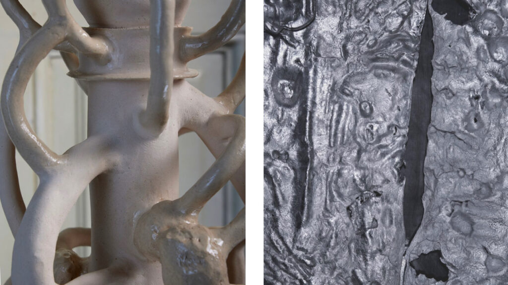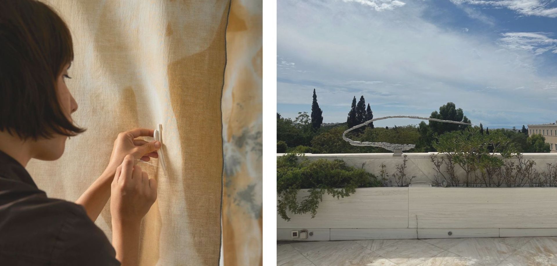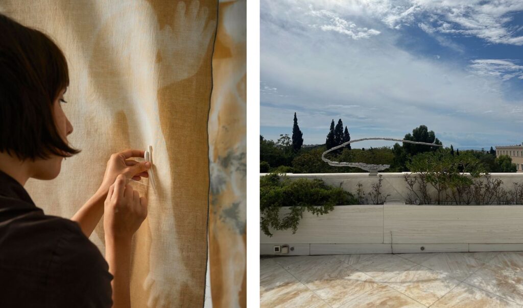 Prints on aluminum surfaces, which freeze in time, imitating a primordial wound back to ground zero. Ceramic vessels in the soil, which narrate archaic rituals, metallic sculptural elements placed with acrophobic tendencies and cyanotypes as an x-ray of existence itself. These are some examples of the works that add an internal and inward dimension to this exhibition, while at the same time allowing the participating artists to expand the boundaries of their artistic expression and explore new ways of interacting with the public.