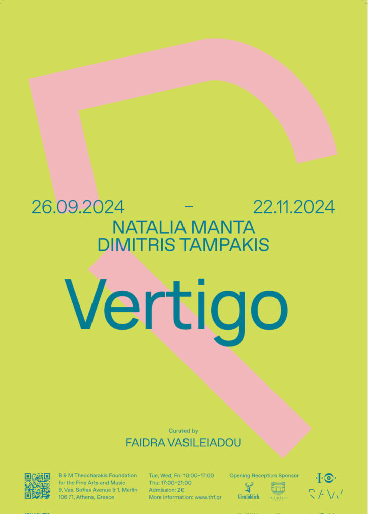 The exhibition titled, Vertigo, presents works by Natalia Manta and Dimitris Tampakis and is curated by Faidra Vasileiadou. Vertigo is presented as part of Raw, the contemporary art series at the B&M Theocharakis Foundation.