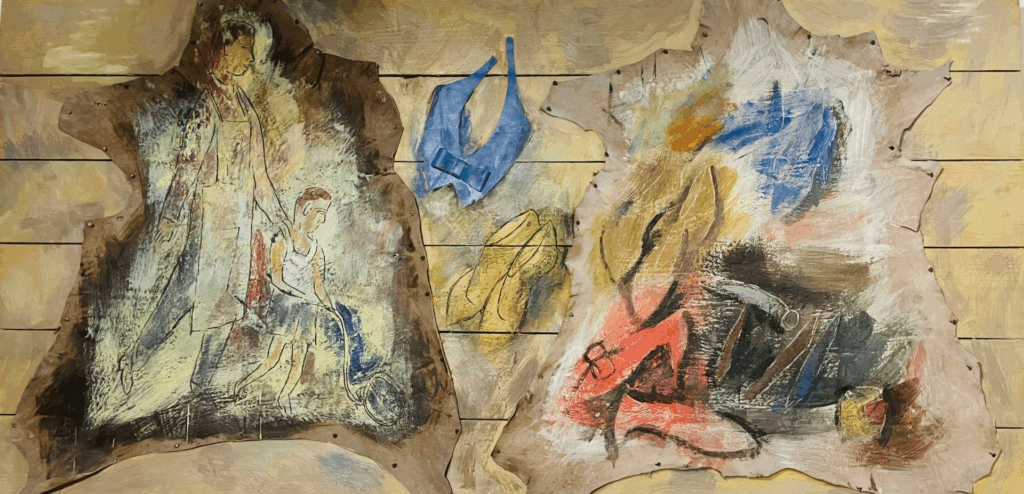 “Conversations with Pavlos Samiou, both in Athens and in Aegina, gave me an unexpectedly clear understanding of his personal and family experiences, his pictorial alphabet, and the beginnings of his desire to become a painter without ever leaving behind what shaped him: high heel-shoes, bags, coffee, cigarette packs, sun, woman, sea, fruit, shell, fish, everything rested on the common table of creation with an arbitrary and cyclical meaning. And this was an embodied way for him to follow his origin and his goals. His love for the palimpsestic sensual memory of materials and places, which he converses inventively with contemporary form and the intangible, with the human touch, the foundation, and the measure.”