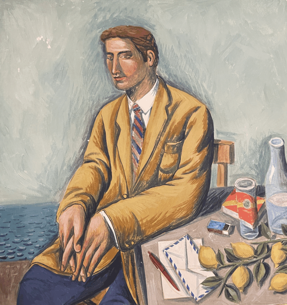 More than 40 works, including oils, watercolors, sculptures, and drawings, most of which come from Maria Xanthakou’s collection—whose generous collaboration and trust have made this exhibition possible, will be exhibited along with valuable archival material shedding light on the artist’s works and restless spirit, as well as his deep love for the island. The exhibition’s title subtly encapsulates all that Pavlos Samiou loved about the island, as well as everything the lovers of the island adored in his paintings: the ochres of Aegina, the ancient fragments, his favorite cafés in the market with their intense greens, the red high heels—a timeless tribute to women and his shoemaker father, the tables carelessly set with letters, shells, and summer fruits, or the love-struck couples under the moonlight, along with many more precious artistic strokes, this is the personal, recognizable, and enchanting mythology of the painter that will unfold magnificently at the Municipal Gallery of Aegina.