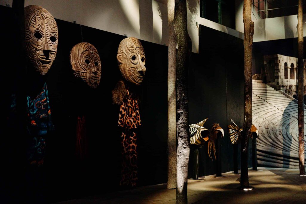 The Ancient Greek Theatre in its modern version (complete with the set of the performance “Vultures”, which broke all attendance records at Epidaurus this year, including costumes, masks, etc).