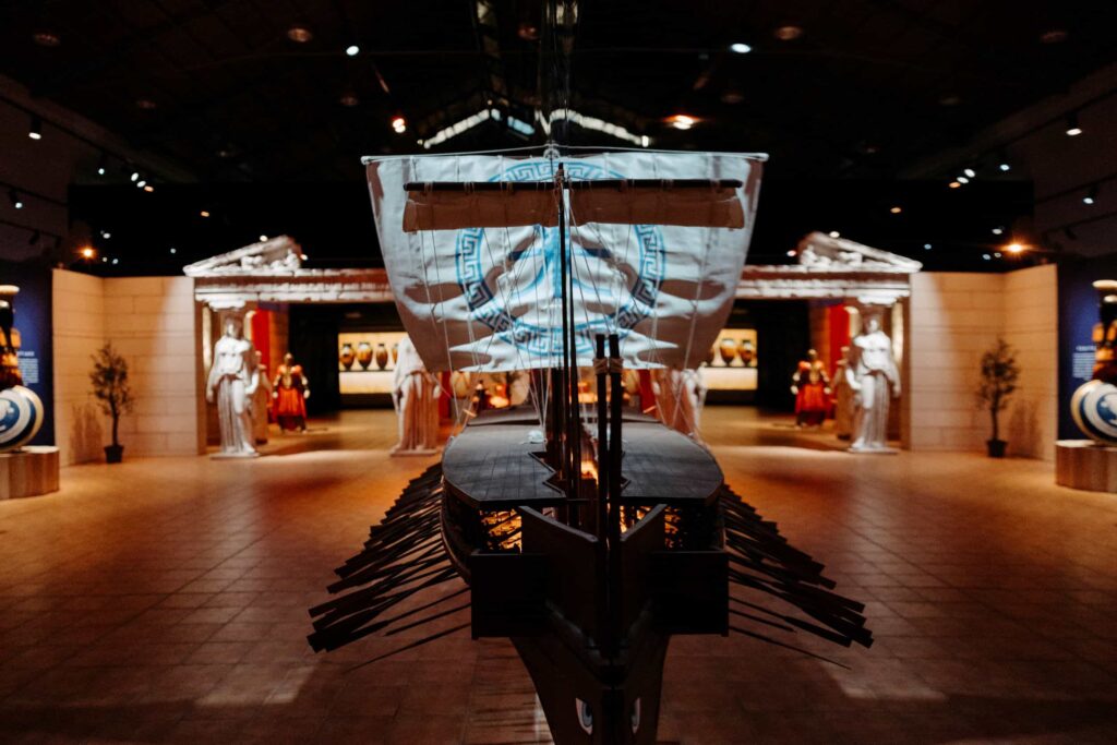 Admire the impressive statues of Atlas, Hercules, the Amazons, Achilles, Leonidas, the Minotaur, Alexander the Great, Zeus, Zeus, the goddess Athena, as well as giant structures such as the Trojan Horse and the Trireme, the warship with which Athens sailed the Mediterranean!