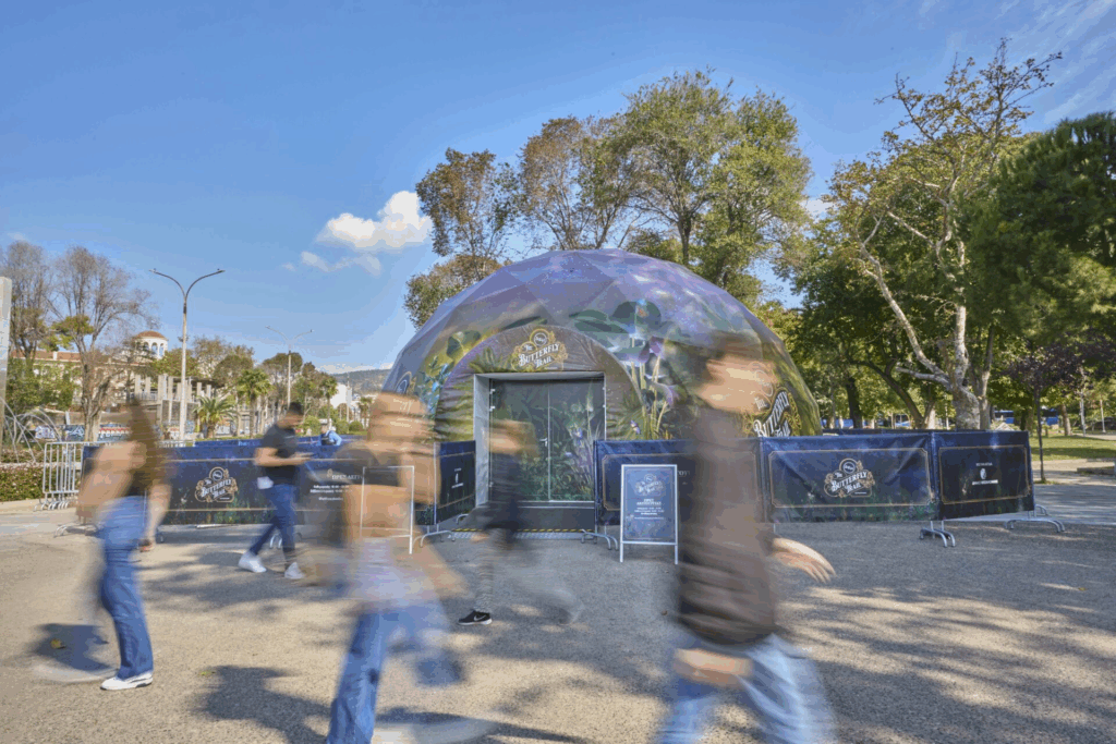 From October 15 to November 15, Xarchakos Park will be transformed into a spectacular installation, where visitors can discover the story of Dr. Pelegrin, a scientist and botanist who brought rare butterfly species from Peru, creating a digital “greenhouse” that began its journey in London, continued in Athens, and now lands in Thessaloniki.