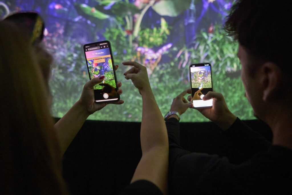 In this impressive “botanical garden,” visitors can interact with butterflies through their smartphone screens. By scanning a QR code, they download an AR app that allows them to “feed” the chrysalises with nectar ampoules. This process magically transforms the chrysalises into colorful butterflies that fly digitally around them, crafting a mesmerizing visual scene. At the end of the trail, visitors can take souvenir photos surrounded by these vibrant butterflies in a specially designed photo area – a unique fusion of technology and imagination.