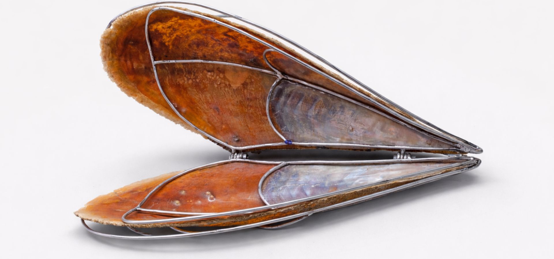Pinna nobilis shell, chrome-plated steel, sound exciters/body shakers, sound (work in progress, commission for the exhibition) Courtesy of the artist.