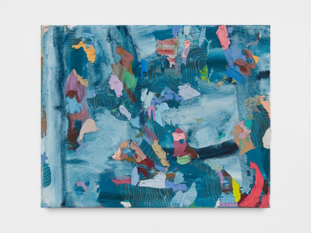 Through the presentation of earlier works, the exhibition also offers a rare opportunity to observe the evolution of the artist’s creative process over the past two decades. Inspired by the abstract and refined colours found in music and nature, Stamkopoulos creates works that eloquently and uniquely capture the transformative beauty of the world around us. His technique begins with the application of a masking material to the canvas, followed by a gestural approach to painting. After this first layer has dried, he alternates the use of masking material with oils, creating a layered process of unpredictable shapes and areas of colourlessness. In the final stage he scrapes the surface of the canvas, adding depth and complexity to his dynamic and embossed works. In the final stage, he scrapes the surface of the canvas, adding depth and complexity to his dynamic and relief works. This method alludes to the transformative process of forming, resulting in paintings that are both visually and stylistically rich.