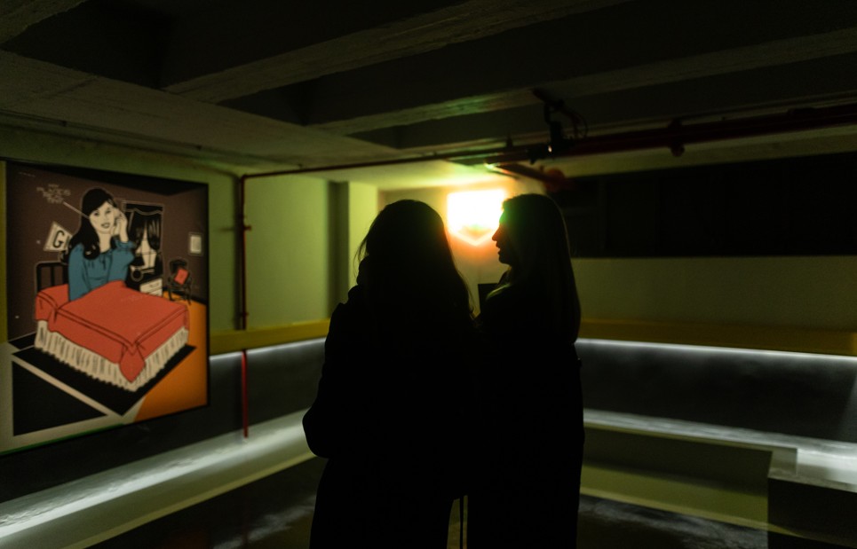 The exhibition “Ephemeral Party” is a response to fundamental questions about art in public space. The car park is reinterpreted to remind us that art can emerge in the most unexpected places, open, accessible and open to all. The space extends over three underground levels and functions as an integral part of the exhibition, intensifying its dynamism. The public is invited to wander through the space and discover works “hidden” in unexpected corners.