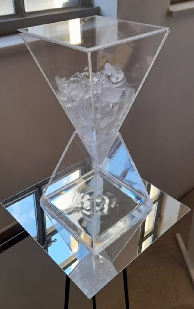 Sculpture, plexiglass, ice, 25 × 25 × 50 cm
