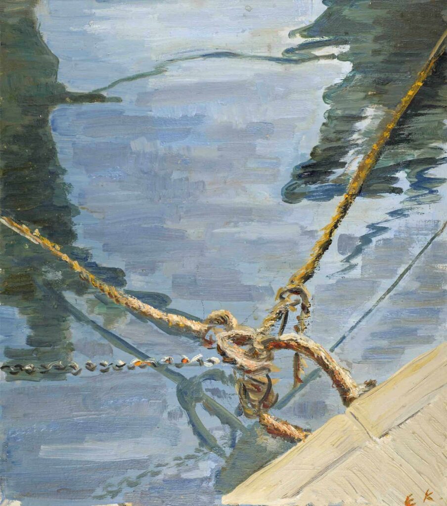 Her landscapes include ‘moments’ of Hydra, Mytilene – mainly olive groves – Molyvos, Kavouri, the Cyclades, Ipati, Dafni, the National Garden and the Acropolis. She painted in places where the green of nature meets the ochre of the coast and the intense blue of the sea. Her personal style has remained relatively constant over the years and the large number of her works testifies to the importance of painting to her.