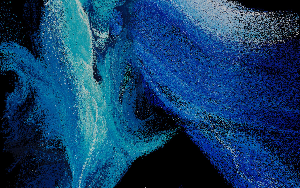 The installation draws on real data concerning water quality, which affect the audiovisual environment and transform it into a dynamic system. It uses actual three-dimensional scans of the reservoir space and structures that evoke neural networks and the hydrological routes of the network. Through tesserae and digital flows, the image does not simply represent, but reconstructs and simulates the space.