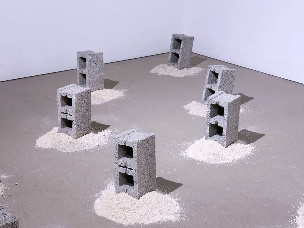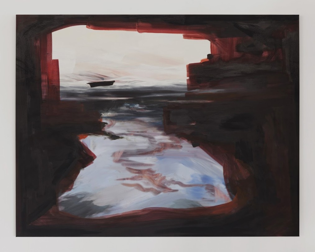 Kleitia Kokalari, born in Albania and raised in Athens, contributes paintings of uncanny landscapes suggestive of the subconscious, featuring border waters and a cave-like portal that appears to lead elsewhere. Zigzagging, geometrically carved sculptures by Swedish-born, Athens-based artist Andreas Kargsten punctuate corners and transitional spaces, marking thresholds between the exhibition’s rooms and corridors.