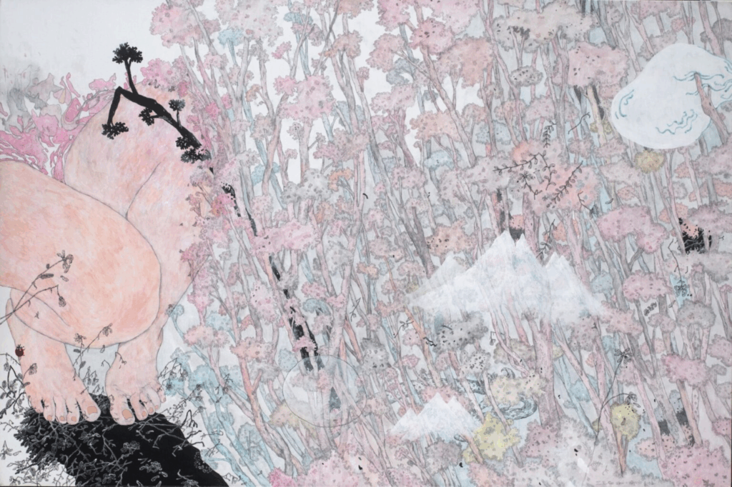 The two Mementos and the two snapshots from my trip to Japan in 2019 are conceptually and chromatically connected by We are Threads I. This work, shown to the public for the first time, was created immediately after the completion of my 2022 solo exhibition and defines the transitional phase between the conclusion of one thematic cycle and the discovery of the next, serving as a connecting link between two different bodies of existential concerns.
