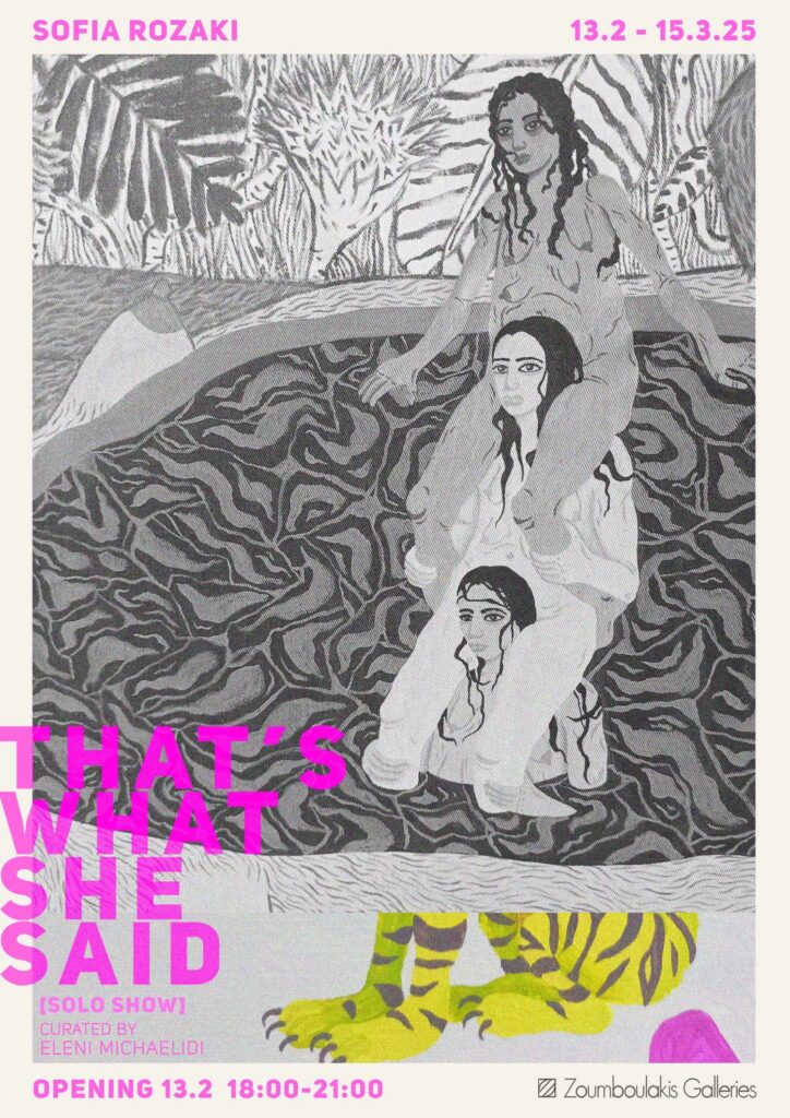 Zoumboulakis Gallery presents the solo exhibition of Sofia Rozaki entitled “that’s what she said” from 13 February to 15 March 2025, curated by Eleni Michaelides.