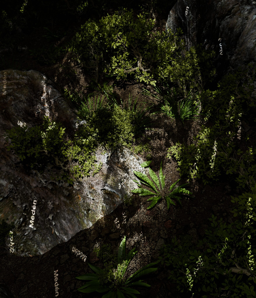 Inspired by the famous Oracle of Delphi, associated in ancient Greece with the figure of the Pythia, and in conversation with the ancient Temple of Apollo, Sandison’s immersive new artwork incorporates visual historical references combined with data on local geology, flora and fauna through the use of advanced technology. The projections interact with the garden environment, creating a harmonious blend of ancient history and modern technology. The installation offers viewers the opportunity to understand AI concepts and their historical context, highlighting the continuation of human research and the pursuit of knowledge.