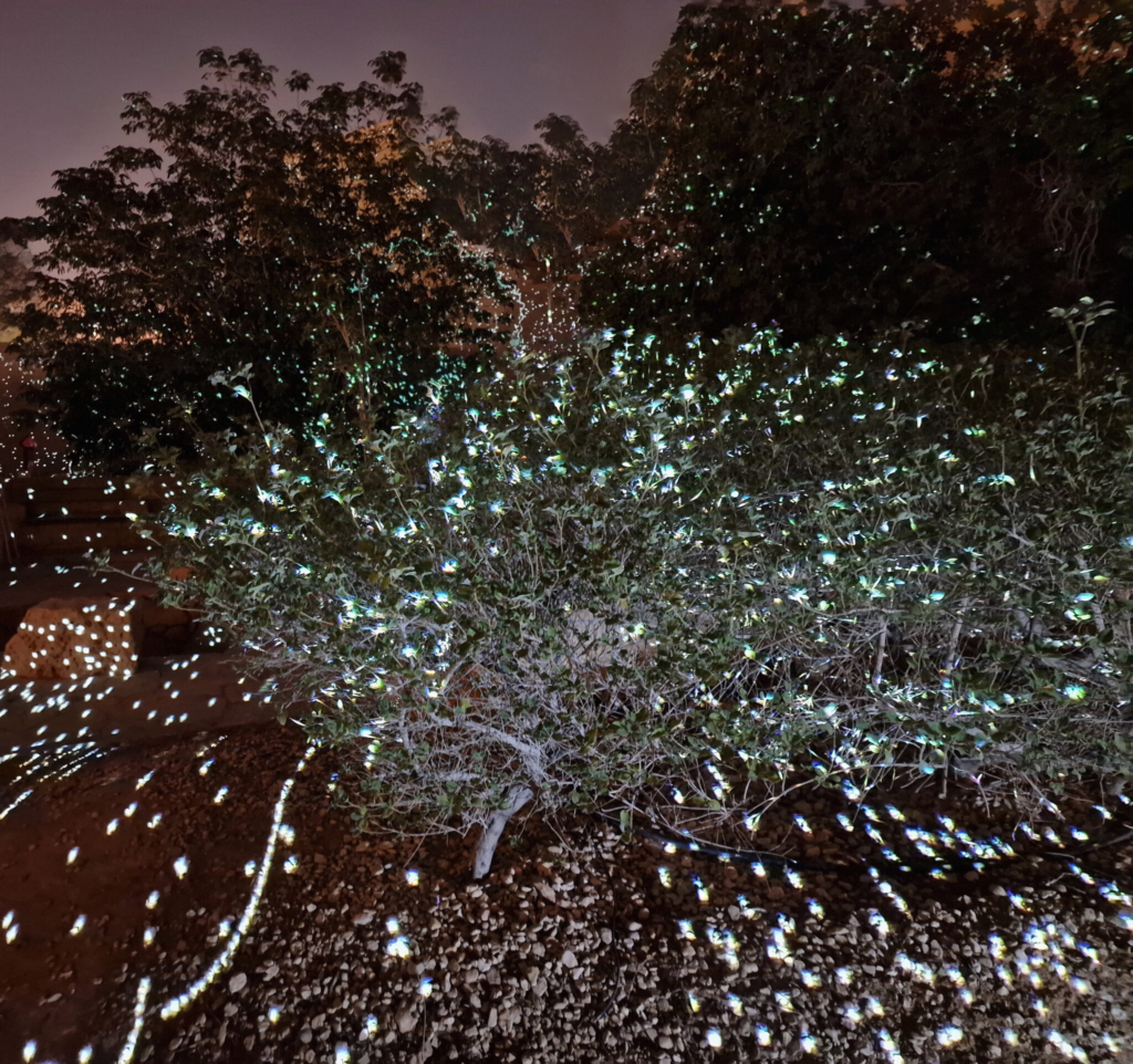 Human history has been shaped by the process of asking questions. Language, symbols, numbers and information – all forms of technology, ancient and modern, focus on the continuation and perpetuation of information. Our first steps into the future of artificial intelligence make sense when seen through the lens of ancient and historical paths we have followed to date. Sandison’s work reveals this historical relationship and offers viewers the opportunity to understand some of the concepts of AI and its potential, while illuminating the overall development of this historical process. The work incorporates images of historical texts and excerpts from dolphin statues, monuments and inscriptions, together with information about the local flora, fauna and geology. Sandison’s ‘The Garden of Pythia’ is fitted with specially designed code and sensors that detect temperature and light levels, allowing the work to interact with the local environment and evolve over time.
