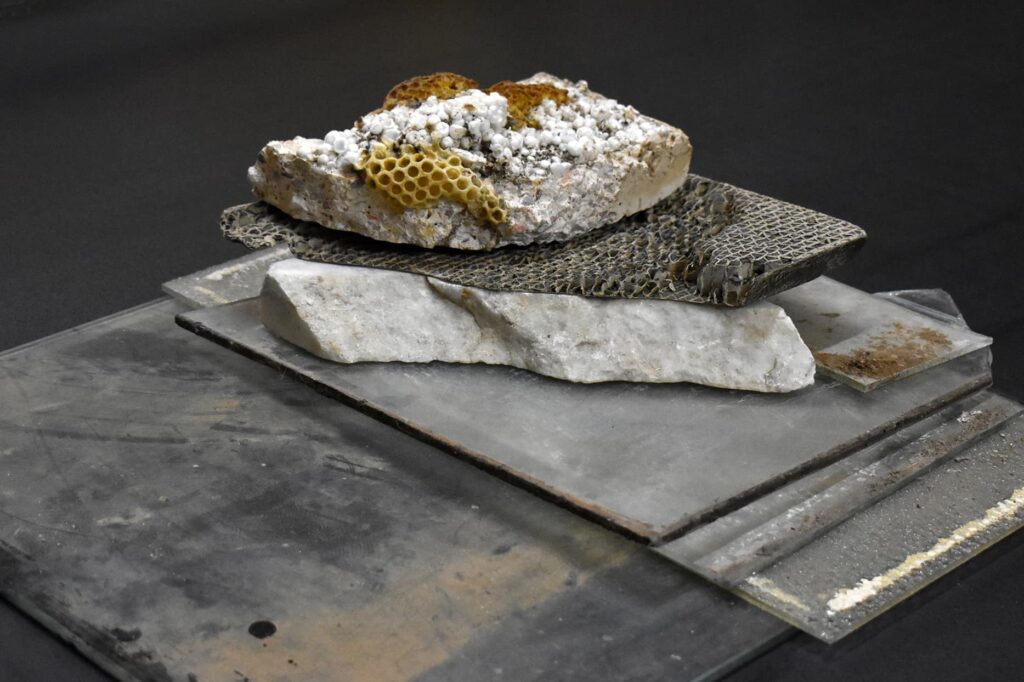 The exhibition This way the traces never die is the outcome of an artistic exploration focused on the landscape as both a concept and a material object of memory, transformation, and absence. Through a series of works that act as witnesses or hybrid remnants, Athina Koumparouli constructs a narrative with open-ended questions around the landscape and its loss during an era of climate crisis.