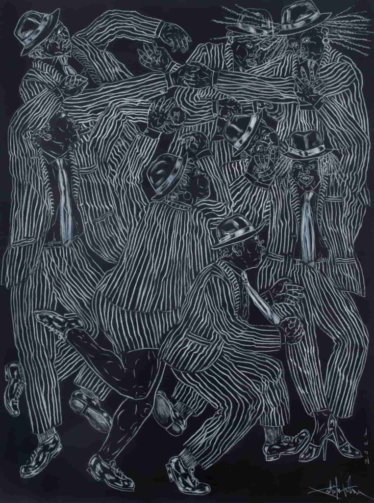 Innovative use of materials is a feature of the exhibition, highlighting the ingenuity and creativity of the participating artists. Yeanzi Saint Etienne’s bold use of molten plastic as a medium expresses both a critique of consumer culture and a redefinition of the artistic process. Similarly, Sejiro Avoseh’s collages and Salifou Lindou’s pastel compositions demonstrate a willingness to challenge the established while remaining rooted in cultural narratives, celebrating the dynamic interplay between tradition and modernity.