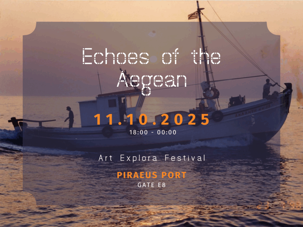 Anchored in the heart of Piraeus, the Art Explora Festival welcomes Archipelago Network for a unique celebration of the Aegean. On Saturday, October 11, 2025, from 18:00 to 00:00, the project Echoes of the Aegean unfolds at Gate E8, inviting the audience on a sensory journey through the sounds, images, and flavors of Cycladic maritime life.