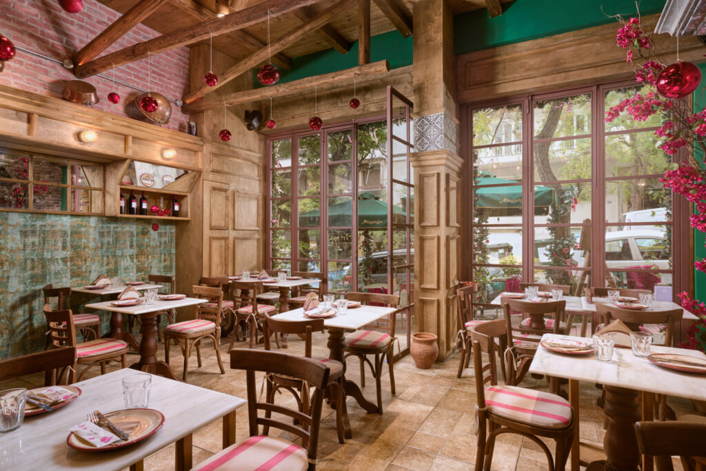 There’s a menu that changes every day, with a wide array of more traditional recipes like mousaka, stuffed vegetables, soutzoukakia etc., and a fixed one with appetizers, salads and main courses like Cretan carbonara, black pig with pasta and cream of Parmesan cheese, a type of risotto with wild mushrooms, graveria cheese and truffle oil, liver tagliatta, “milokopi” fish fillet with herbs and horta. And, for those who have a sweet tooth, the desserts are great too (try the profiteroles made with the authentic recipe, the apple pie and pretty much everything. As for the wine, there’s a good list by Greek producers. A big plus is that the space is very pretty, with a colorful front window and exposed brick walls.