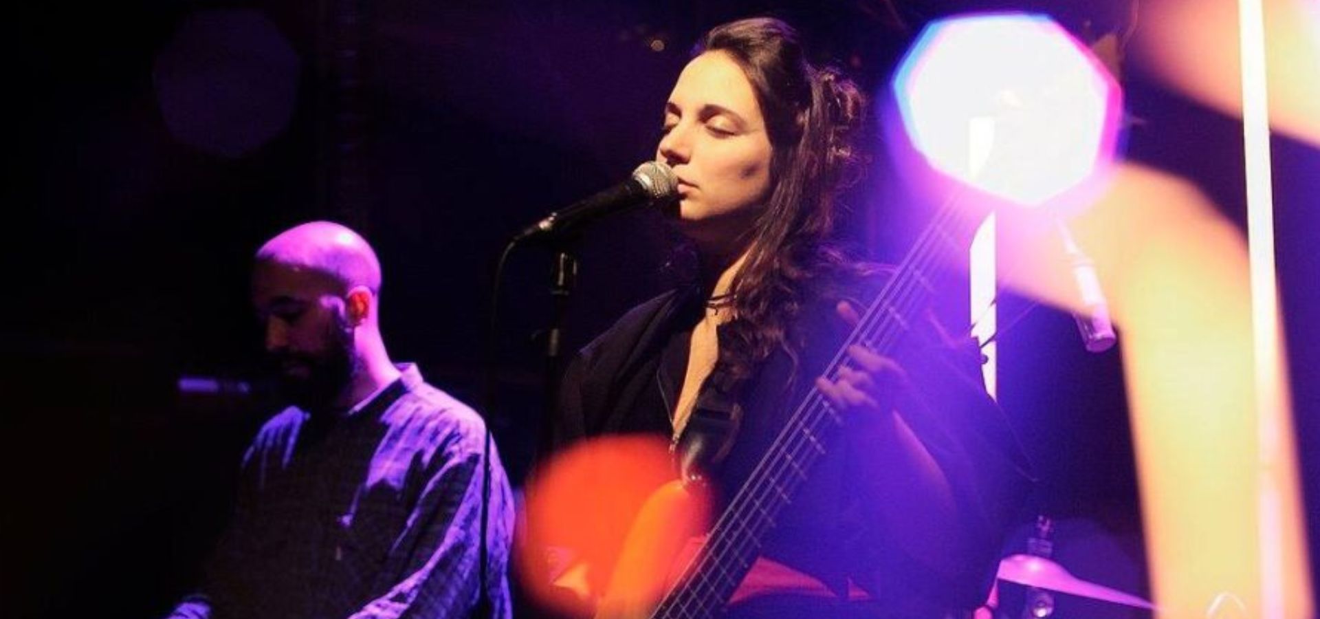 The Eye & Isabel’s Bathroom is a live music performance that combines original musical composition with interactive visual art. The musicians and the visual artist create together, in real time, a unified audiovisual composition. The image does not function as a background or accompaniment, but as a living visual element that interacts with the sound and shapes the final outcome alongside it. The audience experiences a staged performance in which music and visual composition evolve simultaneously.