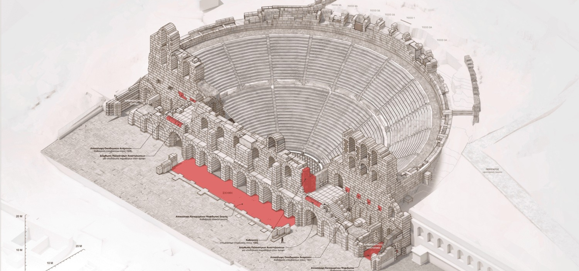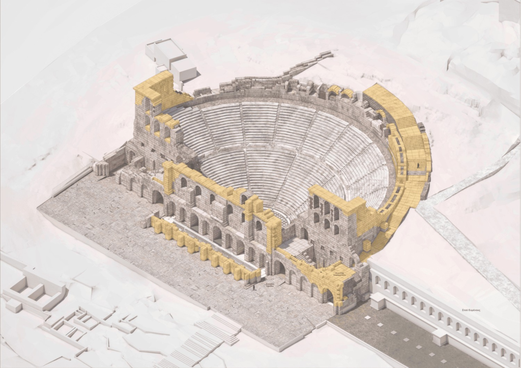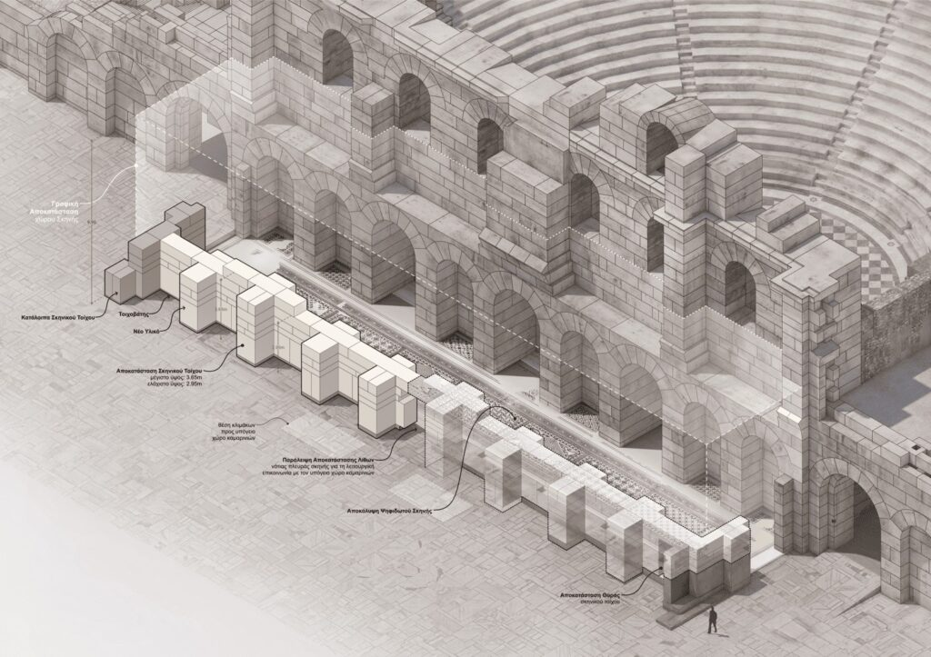 “The Odeon of Herodes Atticus constitutes a major cultural asset for the city of Athens, of great historical significance and of supra-local value. These characteristics shape the framework of the studies and every contemporary intervention undertaken upon it. The proposed interventions align with internationally established principles concerning monument protection, as well as with the contemporary operation of a venue dedicated to performance and music.”