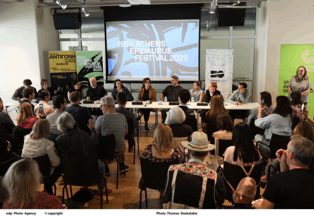 Kitty Paitazoglou, as Ismene, expressed her joy at being part of the ensemble and warmly thanked the two Artistic Directors for their essential support. Thanos Tokakis, who plays the Guard, emphasized the importance of polyphony in Rasche’s stage dramaturgy: “This approach fully resonates with me. It’s important that many voices are heard—especially in our times.”