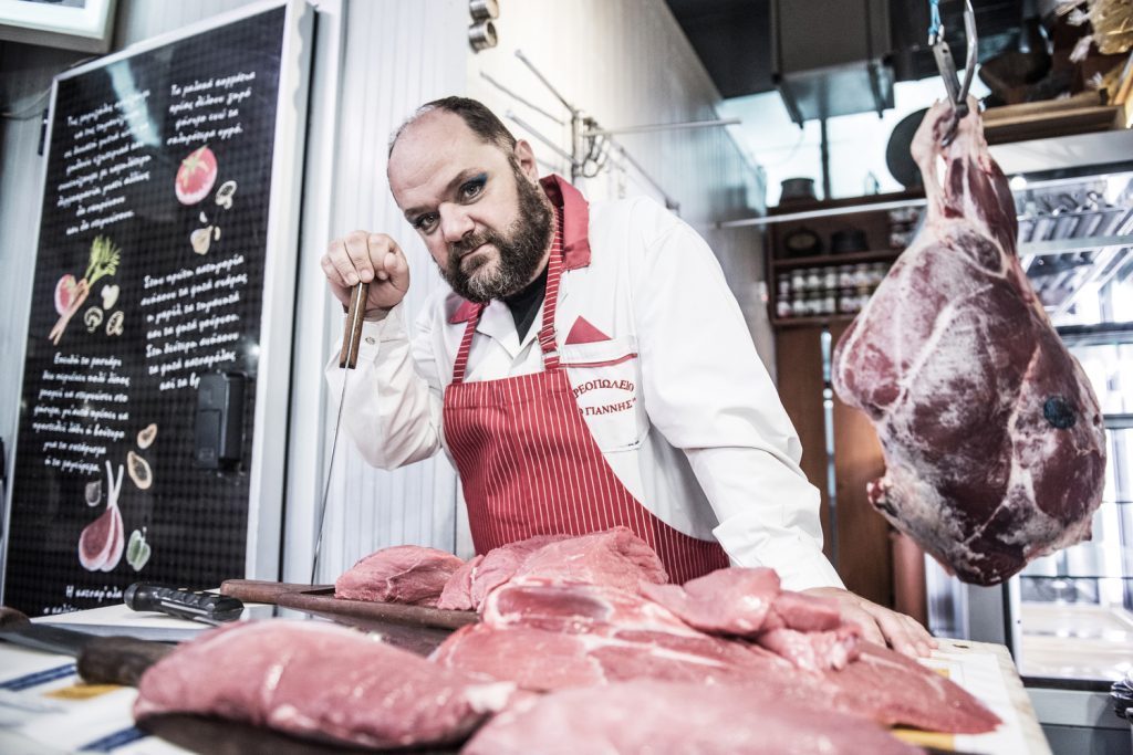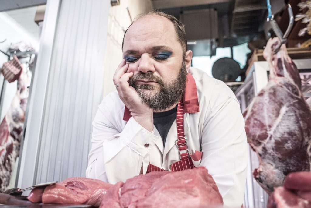 The protagonists are “a butcher who did not want to be born a butcher, who hates the smell of entrails and blood, a magic ring that transforms whoever wears it into what they most desire and fear to be, an engagement party, and a murdered transvestite who idolised Aliki Vougiouklaki, performing her songs in the streets and taverns under mockery and boos”. The author’s text centres around the savageness of rural Greece in the 1980s while the performance around those who have suffered the terror of marginalisation, failure, and public shaming.