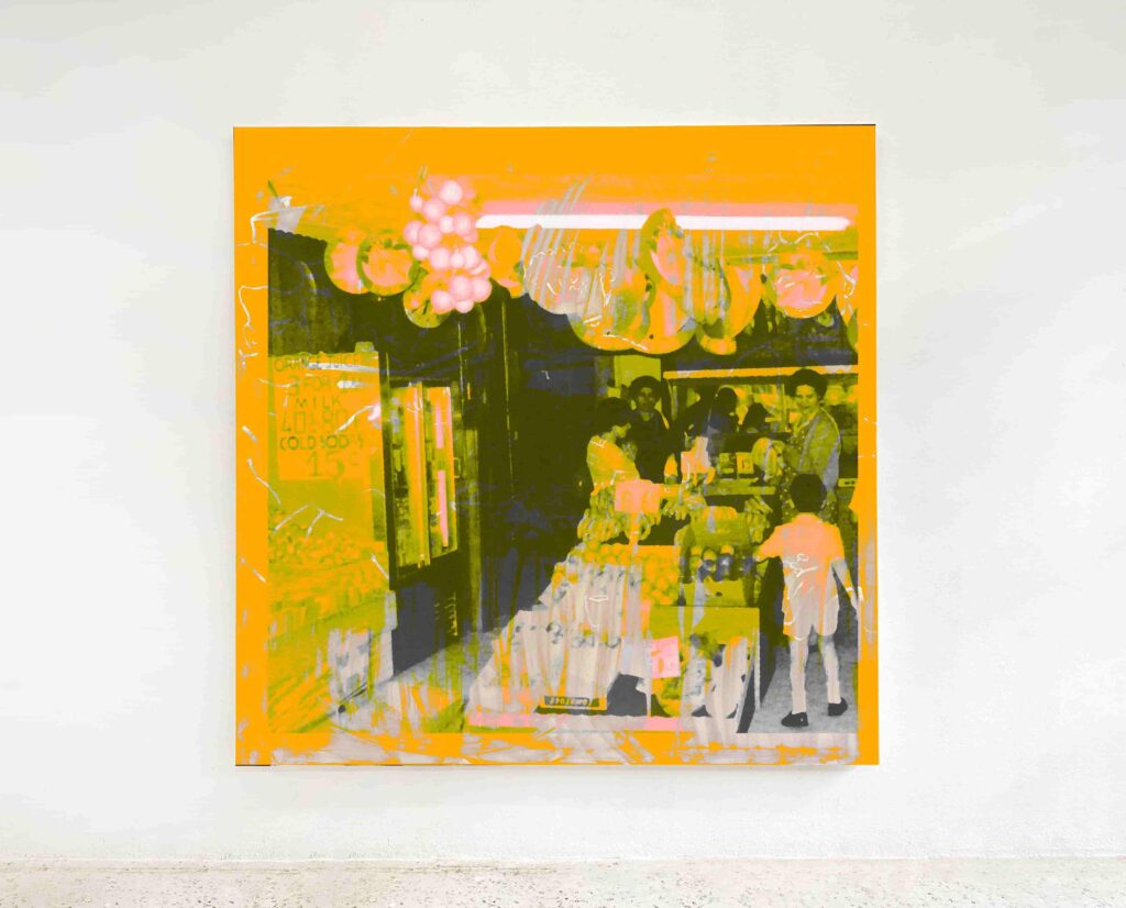 In Economides’ narrative, color transcends mere visual appeal, becoming a powerful storytelling device. The grid of twelve small canvases stands as a testament to color’s transformative role in memory. As images gradually fade across interconnected canvases, vibrant hues rise to the surface, engaging visitors with layers of memory and sensory experience. This intentional use of the grid serves as a visual metaphor for the nuanced journey of memory and familial history, inviting viewers into a contemplative space.
